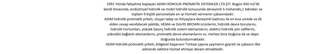 © ADIM HIDROLIK-PNOMATIK SISTEMLER SAN. ve TIC. LTD.STI. Tel : 0-232-458 88 85 Faks : 0-232-433 17 66 1201/1 sokak No:4/3-C Temsil Plaza Yenisehir IZMIR E-Posta : bilgi@adimhidrolik.com.tr www.adimhidrolik.com.trý